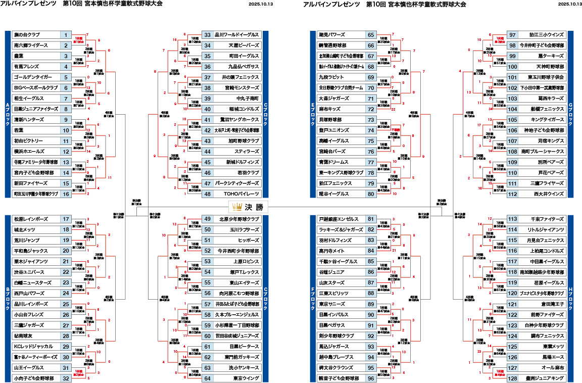 表彰:優勝チームには優勝旗(持ち回り)・優勝杯(持ち回り)・賞状・メダルを授与。準優勝チームには賞状・メダル・準優勝杯を授与。3位のチームには賞状・メダルを授与します。 4位のチームにはメダルを授与します。